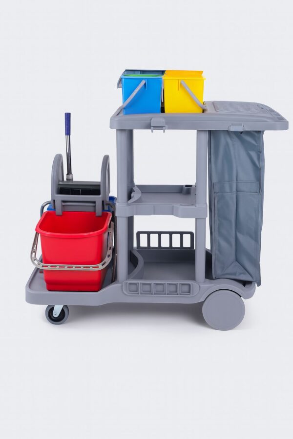 Le Chariot C5 est un équipement polyvalent conçu pour faciliter le transport et la gestion du matériel de nettoyage. Robuste et ergonomique, il permet de transporter seaux, produits et accessoires en toute sécurité tout en réduisant l’effort de l’utilisateur. Compact et maniable, le Chariot C5 s’adapte parfaitement aux environnements professionnels tels que bureaux, commerces, hôtels et établissements collectifs. Sa conception pratique garantit gain de temps et efficacité lors des opérations de nettoyage.